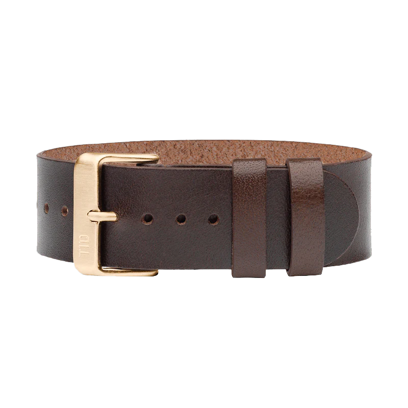 Walnut Leather Strap with Black / Steel / Gold Buckle